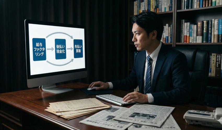 給与ファクタリングとは、給与受取前の労働者の**「給与債権」(未払いの給料)を業者が買い取る形で現金を前渡しし、後日その労働者から満額の給与を回収する契約のことです。一見すると債権の売買(ファクタリング)ですが、実態は利用者に対する前渡し金の貸付に他なりません。そのため、給与ファクタリングを業として行うことは貸金業に該当し、正式に貸金業登録を受けない業者が行えば違法**となります。
